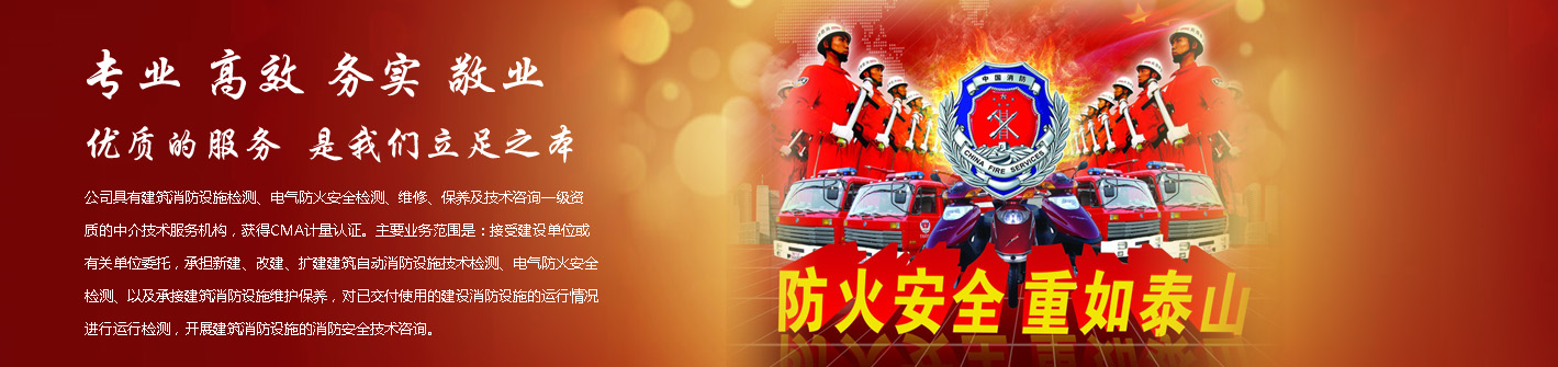 四川省安國建筑消防檢測有限責任公司,成立于1998年,經四川省公安消防總隊批準,工商部門注冊的獨立法人單位。 公司具有建筑消防設施檢測、電氣防火安全檢測、維修、保養及技術咨詢一級資質的中介技術服務機構,獲得CMA計量認證。主要業務范圍是:接受建設單位或有關單位委托,承擔新建、改建、擴建建筑自動消防設施技術檢測、電氣防火安全檢測、以及承接建筑消防設施維護保養,對已交付使用的建設消防設施的運行情況進行運行檢測,開展建筑消防設施的消防安全技術咨詢。公司設辦公室、總工辦、財務部、檢測部、維保部等職能機構,擁有一